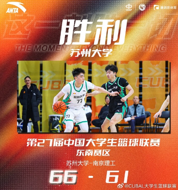 CUBAL-郭子钰18+13 万博文19+9 苏州大学送南京理工3连败