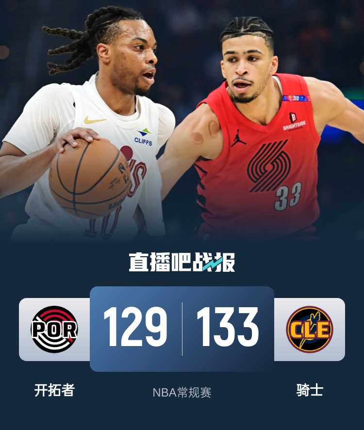 3月3日讯 NBA常规赛,骑士客场挑战开拓者。骑士9连胜,以49胜10负高居联盟第一,开拓者27胜33负排西部第12。此役米切尔缺阵。
